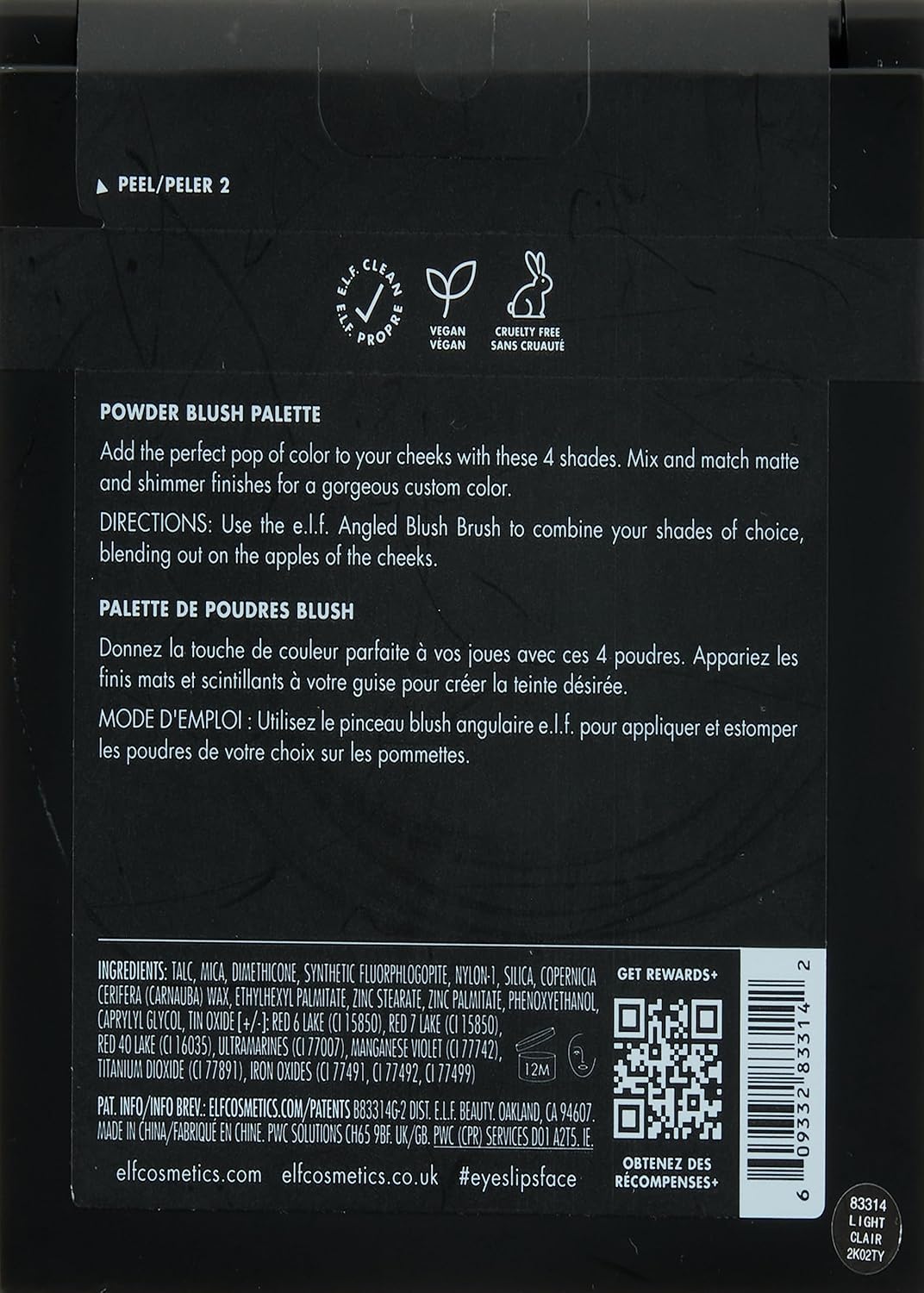 e.l.f. Cosmetics Powder Blush Palette, Four Blush Shades for Beautiful, Long-Lasting Pigment, Light