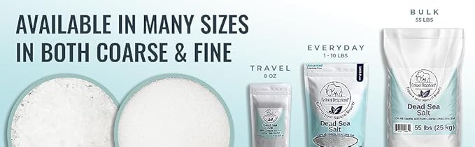 - Nourishing Skincare: Experience the benefits of our Dead Sea Salt, featuring a blend of over 20 natural minerals, including magnesium and calcium. Enhance your skincare routine with a product designed to help maintain the skin's natural moisture and balance.