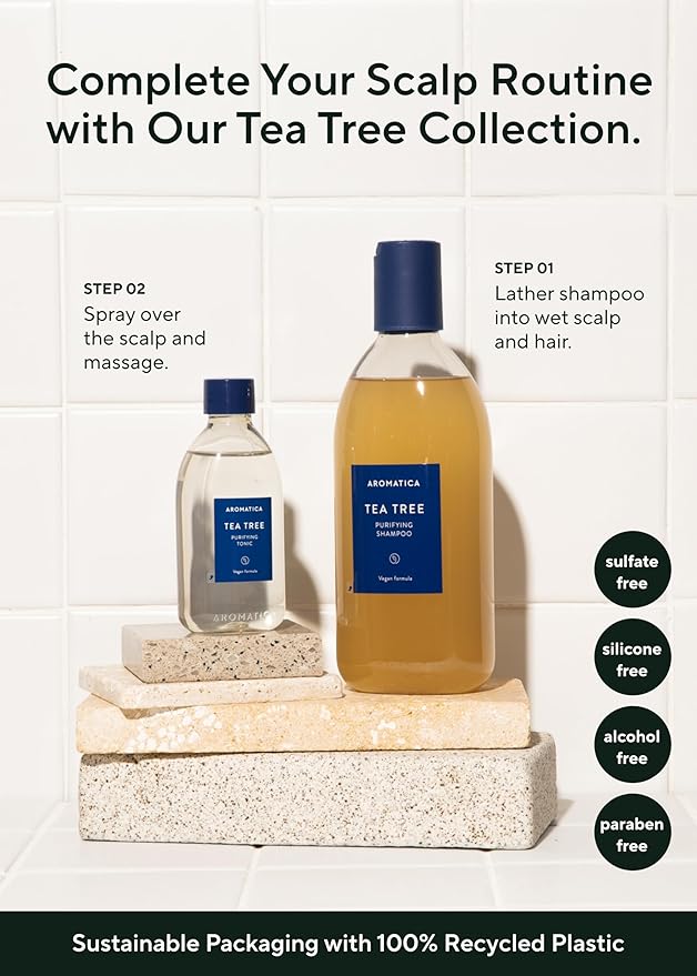 - [ Sebum Control with Tea Tree Oil ] Harness the clarifying power of tea tree oil in our specialized shampoo, designed to tackle oily scalp and dandruff effectively. Enjoy a flake-free scalp and revitalized hair with our tea tree cleansing shampoo.