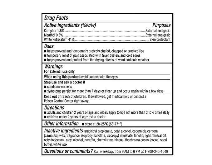 - 0.15 Oz. Tube of External Analgesic Lip Balm