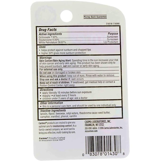 Carmex Classic Lip Balm Cherry SPF 15, 0.35 Ounce Pack of 3 (Tube in Blister Pack), Presentation may vary