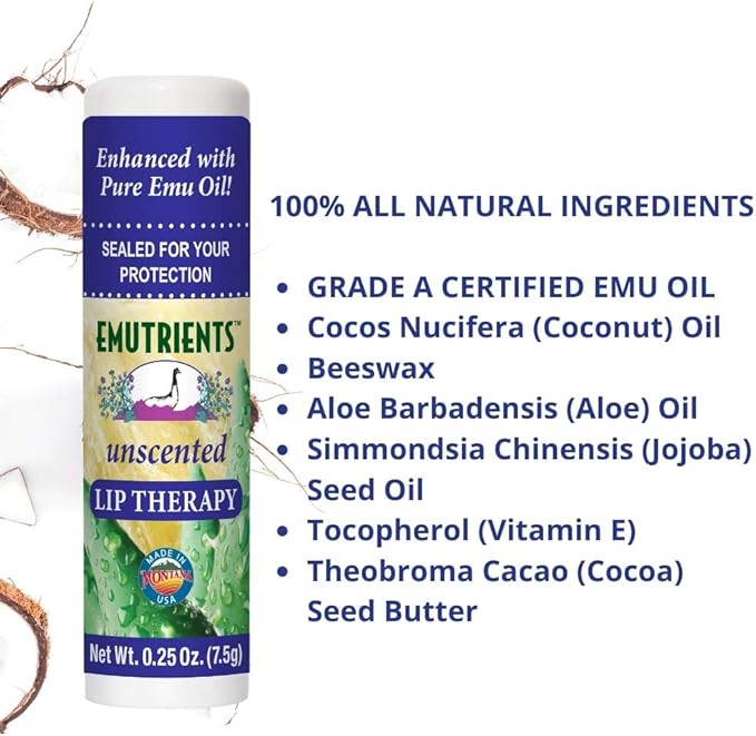 Montana Emu Ranch - Lip Therapy Lip Balm - 0.25 Ounce - Unscented - 3 Pack - Made with Pure Emu Oil