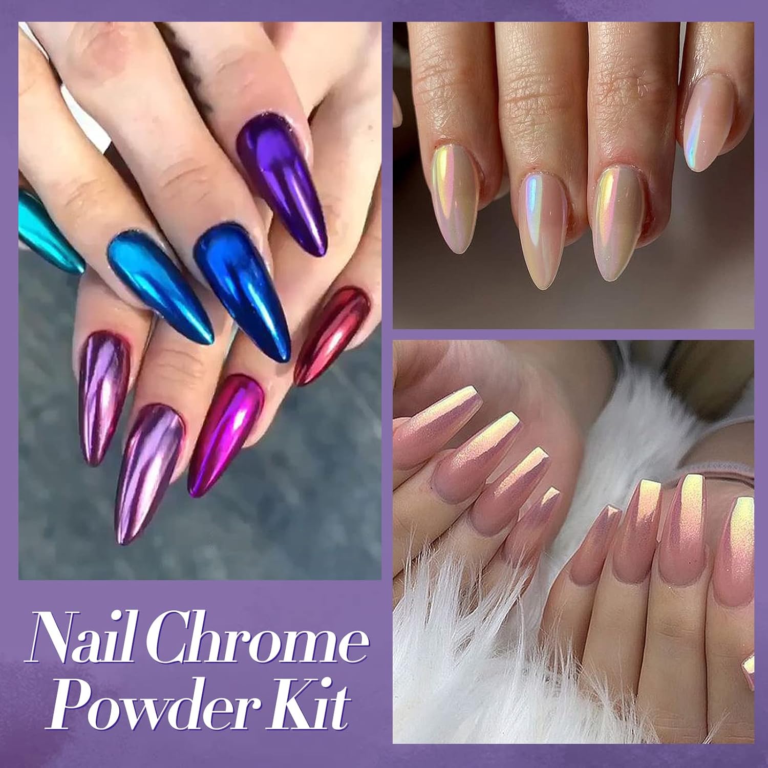 - WIDE APPLICATION: The colorful mirror nail powder is suitable to be applied on UV gel nails, acrylic nails, natural nails etc, a helpful DIY tool for nail art design. Different polish will give different actual effect.Trying different polish can also bring more fun to you with the chameleon powder.