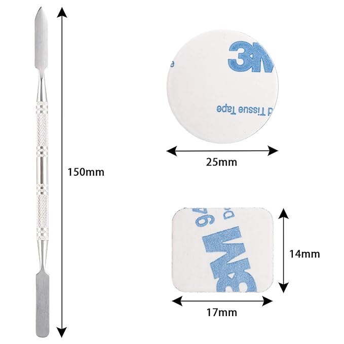 - It including 28pcs round (diameter:25mm)metal stickers,28pcs square(17*13mm) metal stickers and 1pcs depotting spatula.