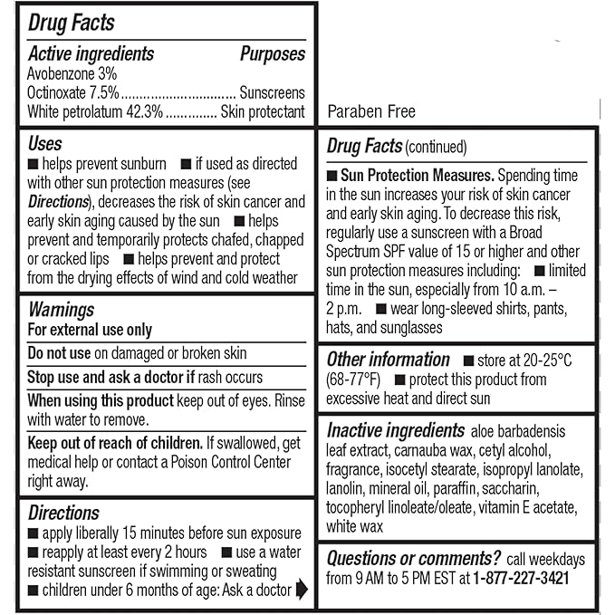 - Non-tinted and paraben free, this SPF 15 lip balm features moisturizing sun protection