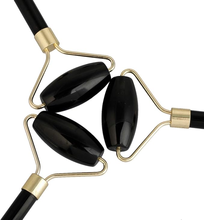 Rockcloud Natural Crystal Stone Roller Massager Double Neck Face & Neck Massage Therapy Anti-Aging Wrinkle Healing Slimming Skincare Tool,Black Obsidian