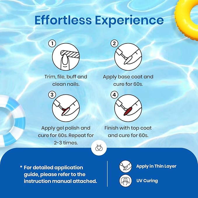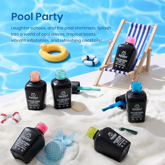 - 【Environmental & Healthy】: The 6pcs pool party series gel polish set are made from 9 Toxin Free Ingredient which makes it safe and has low odor. With good tenacity and highly pigmented, Beetles premium gel material bring you brilliant shine finish, smooth appearance and flawless coverage.