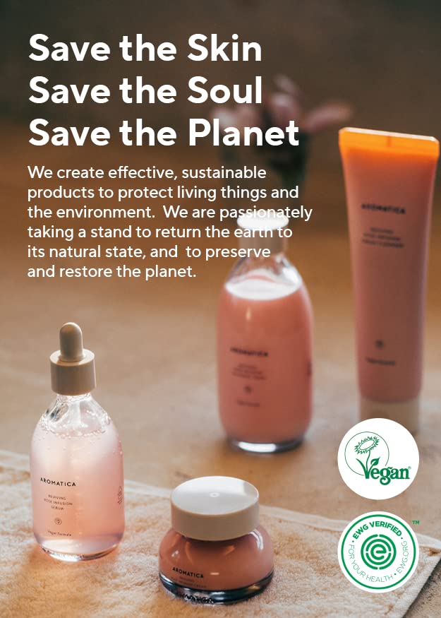 AROMATICA Reviving Rose Infusion Serum 3.38oz / 100ml, Vegan, Rejuvenating Hydration Serum, Vitality Serum for dry skin | with Damask Rose Water and Rose Oil