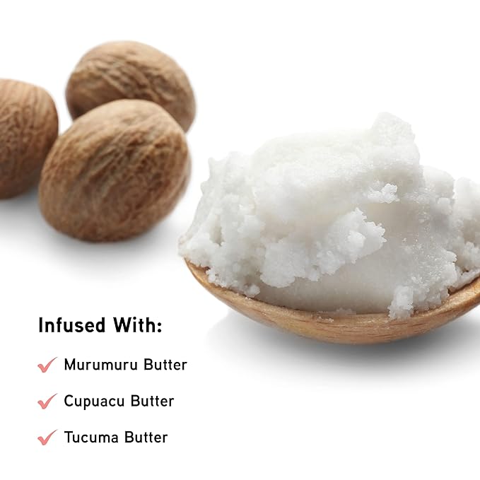 - Infused with a powerful blend of Murumuru Butter, Cupuacu Butter, and Tucuma Butter, from the lush and nutrient-rich Amazon. Packed with essential fatty acids and pro-vitamins that soften, condition and moisturize skin, leaivng it silky soft.