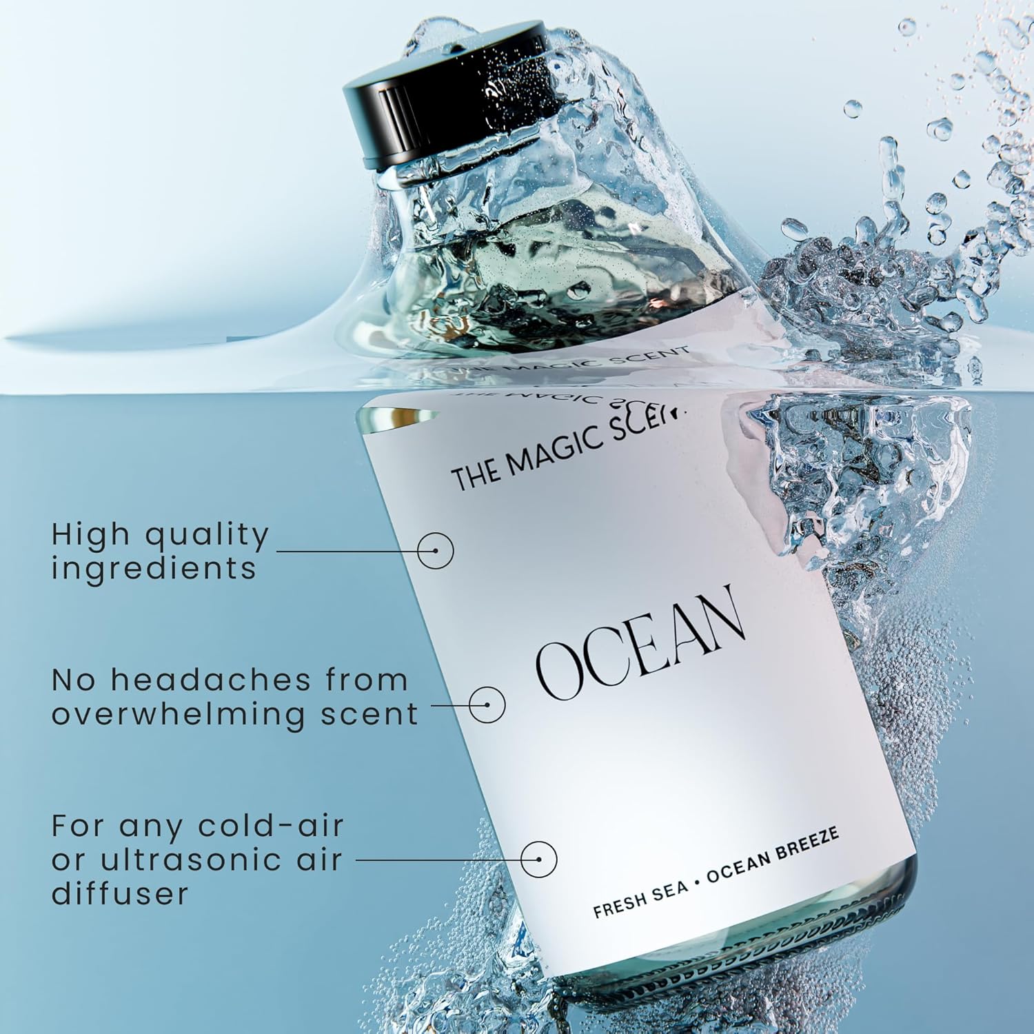 - PREMIUM BLEND OF NATURAL DIFFUSER OIL SCENTS - Ocean is expertly made in Miami, USA. Ocean graces settings with the luxurious calm of ocean air, enriched by an exotic melding of clove, rose, sweet melon, and green apple.
