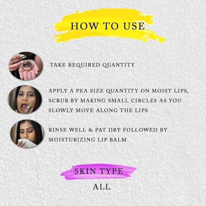 - NO PARABEN, NO SLS, NO SULPHATE: Elevate your lip care with a scrub that is free from harmful additives. Our formula excludes parabens, SLS, and sulfates, ensuring a gentle yet effective exfoliation for your delicate lips.