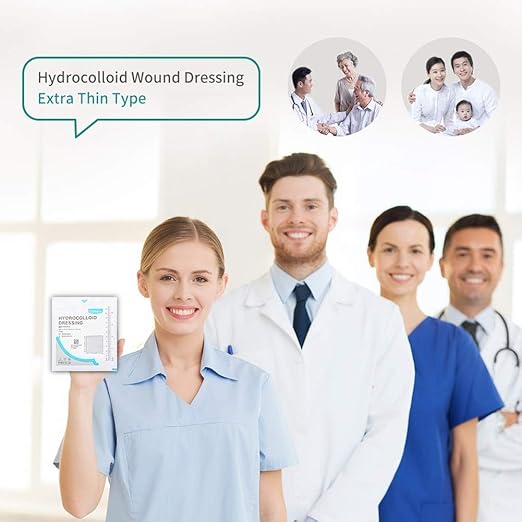 Dimora Hydrocolloid Dressing 4" x 4" for Wound Care, 10 Pack Large Patch Bandages with Self-Adhesive for Bedsore, Burn, Blister, Acne Care, Super Absorbent for Fast Healing