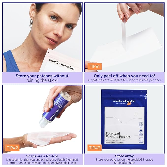 - EASY TO USE: Cleanse & dry skin, keeping it free of ANY skincare. Peel away plastic layer of the Silicone Patch to reveal adhesive. Stick Silicone Patch on target area, adhesive side on skin. Wear while you sleep for best results or 1-2 hours for a boost. After use, gently peel off Patches, sticking them on the enclosed storage sheet.