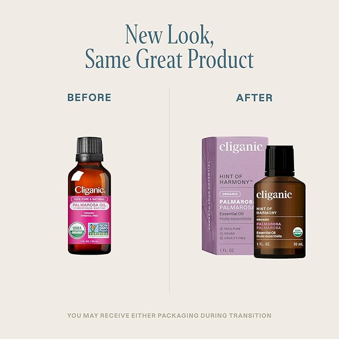 Cliganic USDA Organic Palmarosa Essential Oil, 1oz - 100% Pure Natural Undiluted for Aromatherapy | Non-GMO (Packaging May Vary)