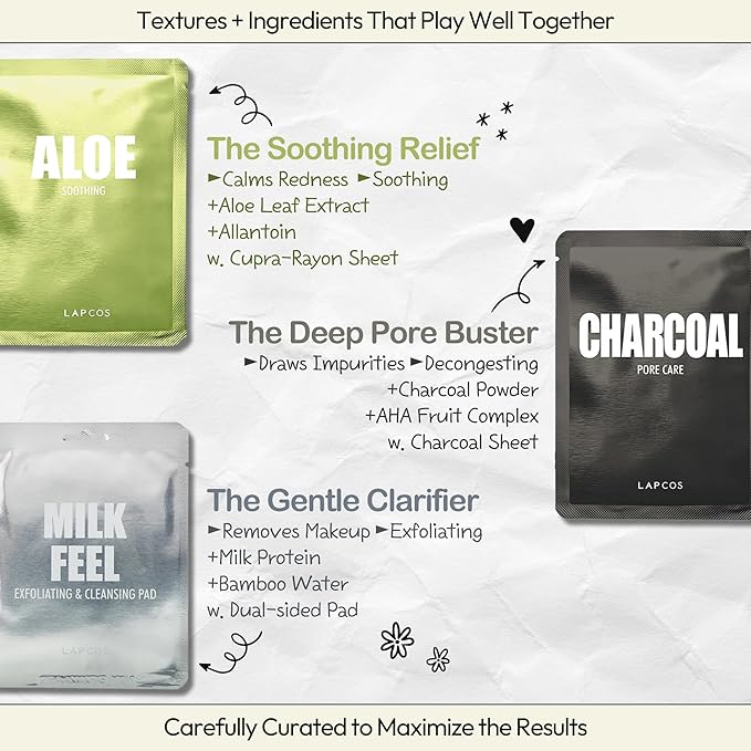 - HOW TO USE: Start with the face pad on day one to cleanse and exfoliate skin, then choose the facial mask that best fits what your complexion needs, whether it's moisturizing, soothing, or firming skin.