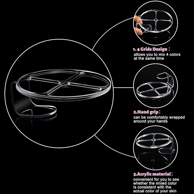 - 4-Grid design: this hand makeup mixing palette is about 8 x 8 cm/ 3.15 x 3.15 inches, it is divided into 4 parts, so that you can mix a variety of cosmetics at the same time, making the make-up process more effective and faster