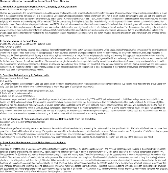 - Proven: published studies show that 80%-90% of patients undergoing Dead Sea mineral treatments experience significant improvement in arthritis and skin conditions including Psoriasis and Eczema. A list of studies is included above.