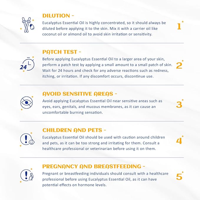 - [ ๐๐จ๐๐ฒ ๐๐๐ฌ๐ฌ๐๐ ๐ ] Mix 1 drop of eucalyptus essential oil with 10 drops of carrier oil (sweet almond, grapeseed or jojoba). Take an appropriate amount of the blended oil in your palm and apply it in a circular motion on the body parts