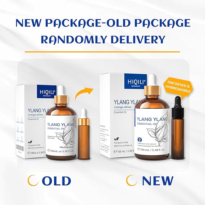 HIQILI Ylang-Ylang Essential Oil, Long-Lasting Scent for Diffuser, Perfumes, Aromatherapy, DIY - 3.38 Fl Oz