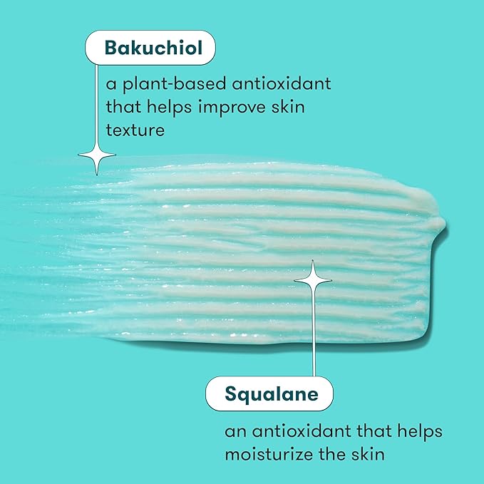 - PLANT-BASED INGREDIENTS - Bakuchiol, a naturally derived alternative to retinol, an antioxidant that helps improve skin texture.