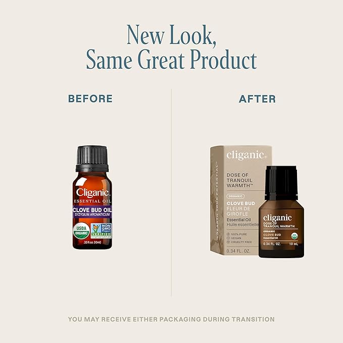 Cliganic Organic Clove Bud Essential Oil, 100% Pure Natural for Aromatherapy | Non-GMO Verified (Packaging May Vary)