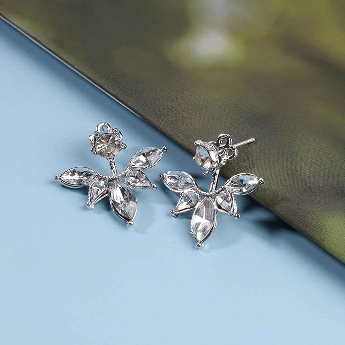 - Lotus Flower Ear Jackets Earrings made of high quality alloy and crystal,lightweight and comfortable to wear.