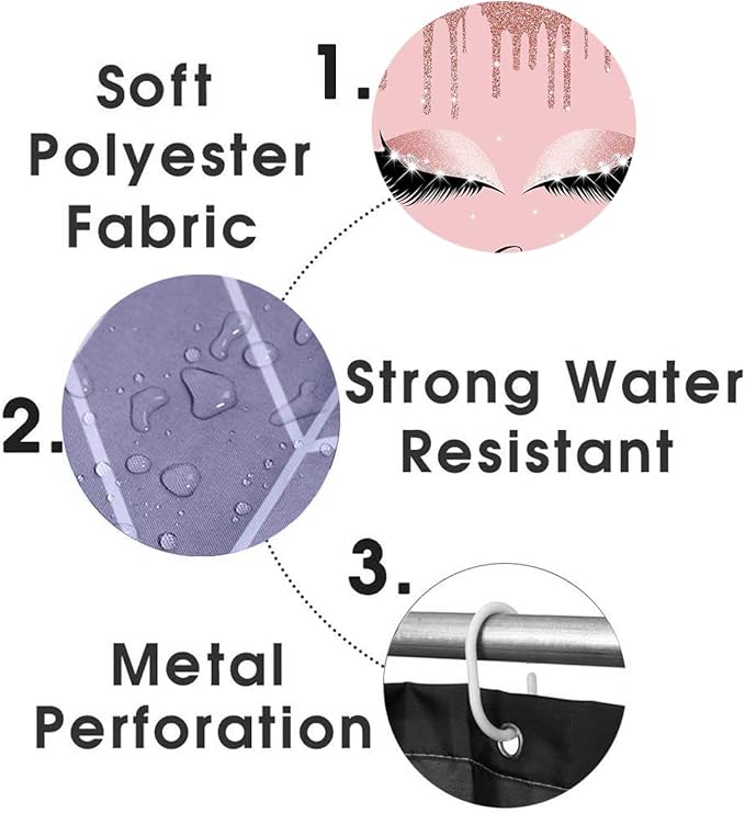 4PCS Hello Gorgeous Unicorn Eyelash Shower Curtain Set Luxury Diamond Rose Gold Glitter Eyeshadow Makeup Pink Glam Beauty Fashion Girly Women Bathroom Decor Non-slip Bath Mat Toilet Rug, Bling