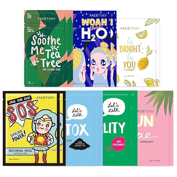 FACETORY K Beauty Face Mask Skin Care - BEST OF 7 COLLECTION Sheet Mask Set (14 pc) | Natural Premium Korean Face Mask For All Skin Types - No Sulfates No Parabens