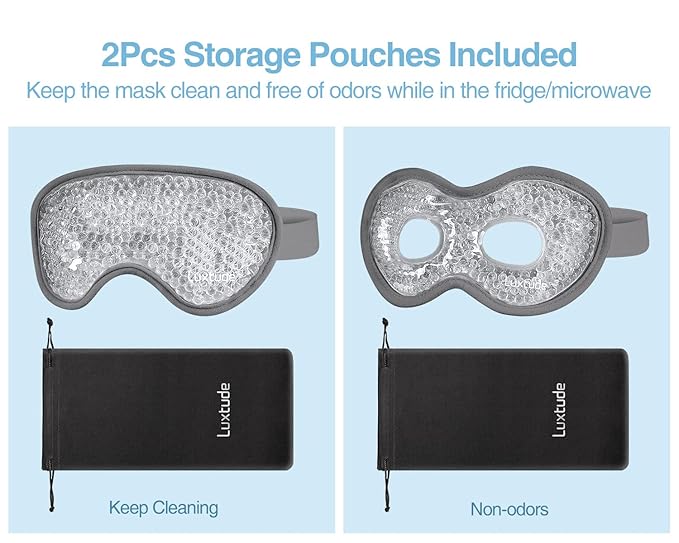 Luxtude Gel Eye Mask 2PCS, Reusable Cooling Eye Masks for Sleeping, Hot Cold Eye Mask Ice Pack, Frozen Cold Eye Compress for Puffiness/Dark Circles/Headaches/Migraines/Eye Bags/Stress Relief (Gray)