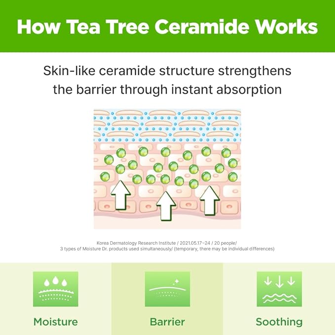 - TEA TREE CERAMIDE FORMULA: Tea Tree Ceramide strengthens the skin’s natural barrier, providing deep moisture, protection, and resilience for a healthy complexion.