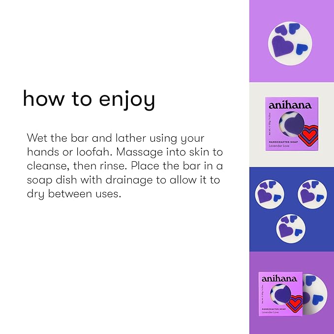 ANIHANA Handcrafted Natural Soap with Coconut Oil, Gentle Cleansing, Paraben Free, Refreshing Lavender Love Scent, 4.23 oz