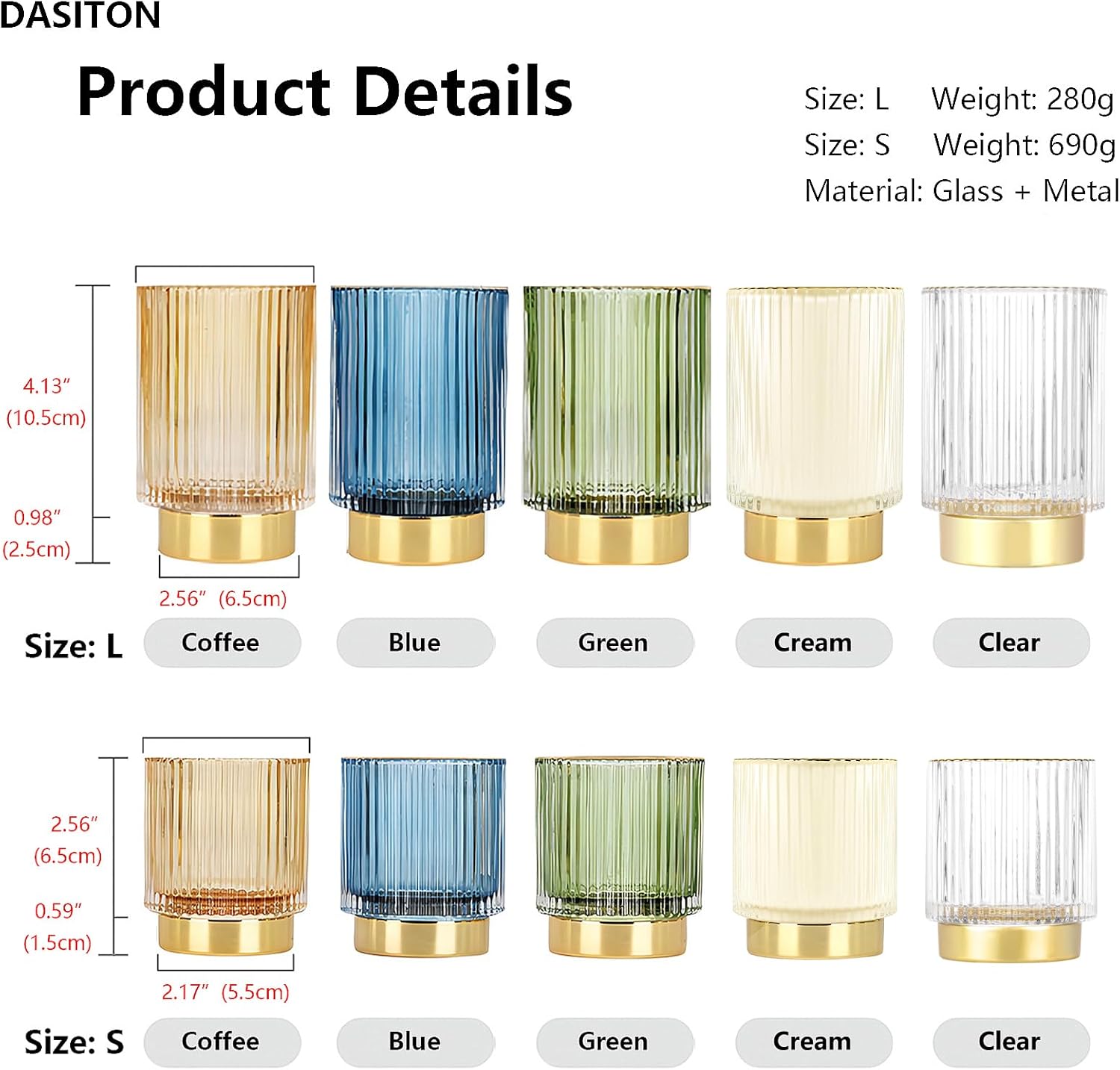 DASITON Makeup Brush holder Organizer,Crystal Cosmetic Makeup Brush Glass Brushes Storage Holder, Vintage Make Up Brush Cup Pen Pencil Holder striped vase(Blue S)