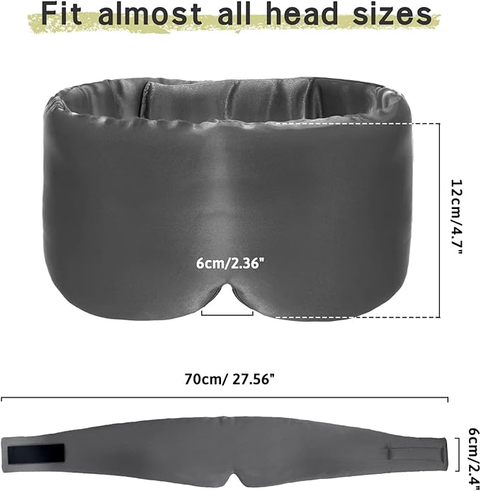 - Large Size & Adjustable: The eyemask is with Large Size to fit most head circumference and side-sleepers. You may adjust the strap to your suitable length via the Velcro, and the mask will no shift off easily. You won’t feel any pressure on your face or your eye balls with this sleep face mask, and we believe that you will want to use it in the long term
