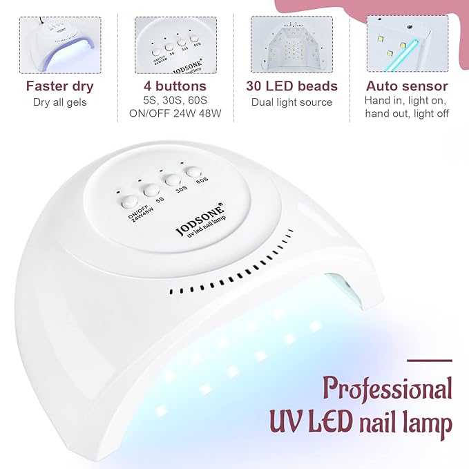 - Fast Curing Nail Lamp: This manicure lamp has three cure modes, namely 5S, 30S and 60S. Generally, the cure mode can be selected according to the dosage of gel nail polish, or according to your own suitable mode.