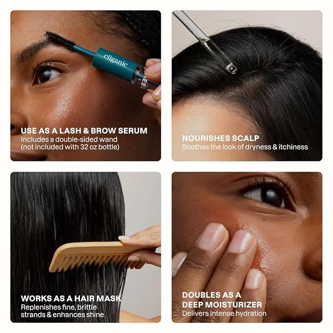 Cliganic Organic Castor Oil, 100% Pure (2oz Glass Bottle with Eyelash Kit) - For Eyelashes, Eyebrows, Hair & Skin (Packaging May Vary)
