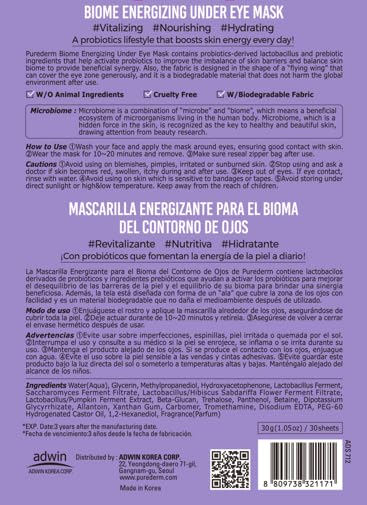 Purederm Biome Energizing Under Eye Mask (4 Pack) – Rich Biome Under Eye Patches for improving skin barrier & Moisturizing