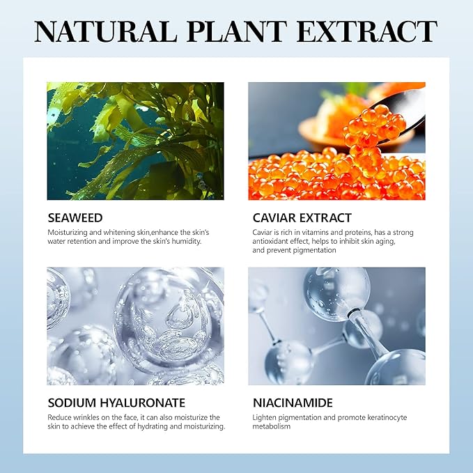 - EYE PATCHES FOR PUFFY EYES WITH NATURAL INGREDIENTS: The dark circle under-eye treatment product for women was made of Seaweed, Caviar Extract, Hyaluronic acid, and Niacinamide providing instant and long-lasting hydration to the skin around your eyes. From the very first application, you’ll notice increased hydration, depuffing, tone, and a smoother and brighter surface to give you a new kind of long-lasting confidence.