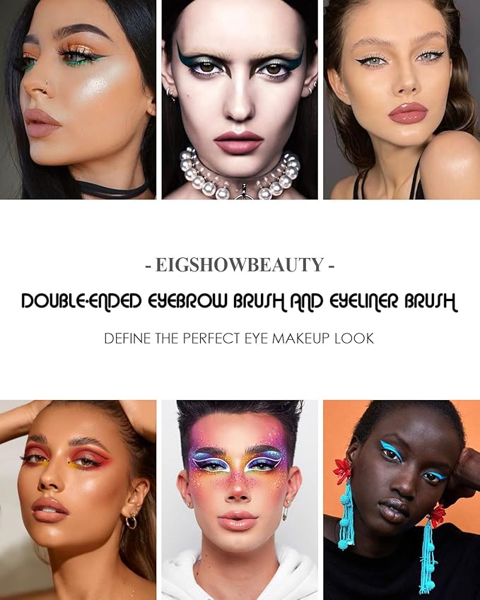 Eyebrow Brush & Eyeliner Brush, EigshowBeauty Double-Ended BrushesOne Brush For 2 Uses - Black (D104)