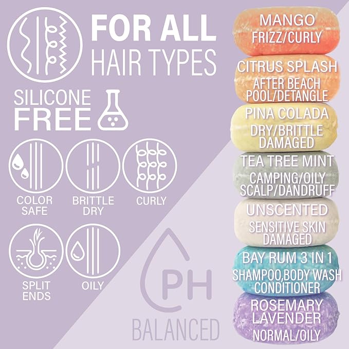 - Plant-Based & Vegan Ingredients: Handcrafted in the USA with natural ingredients like Rice Protein Water, Coconut Oil, and a blend of pure essential oils, this shampoo bar is free of harmful chemicals like sulfates, silicones, and parabens.