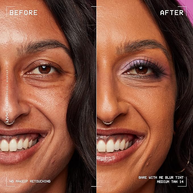 NYX PROFESSIONAL MAKEUP Bare With Me Blur Skin Tint Foundation Make Up with Matcha, Glycerin & Niacinamide - Medium Tan