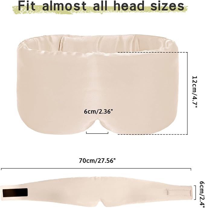 - Large Size & Adjustable: The eyemask is with Large Size to fit most head circumference and side-sleepers. You may adjust the strap to your suitable length via the Velcro, and the mask will no shift off easily. You won’t feel any pressure on your face or your eye balls with this sleep face mask, and we believe that you will want to use it in the long term