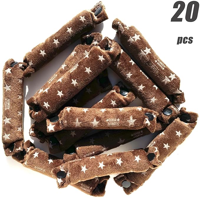 Aimin Hair Heatless Hair Curlers No Heat, Heatless Curls Overnight Blowout Rods, No Heat Hair Curlers To Sleep In, Soft Flexi Rods For Long Hair, Thick Curling Rod Styling Tools(20pcs star coffee)