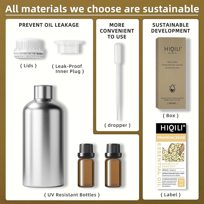 HIQILI 16 Fl Oz Frankincense Essential Oil, for Massage Skin Care, Diffuser, Aromatherapy, 100% Pure Undiluted