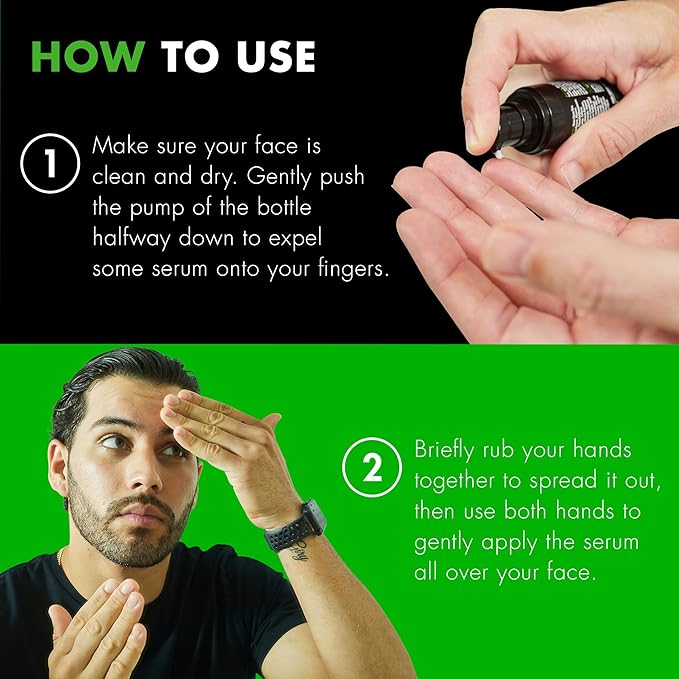 - How to Use: Apply twice a day. First, make sure your face is clean and dry. Then, gently push the pump of the bottle halfway down to expel some serum onto your fingers. Briefly rub your hands together to spread it out, then use both hands to gently apply it all over your face, avoiding your eyes and mouth.
