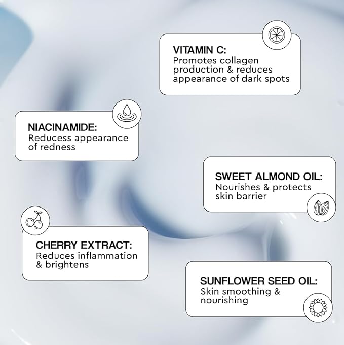 - Infused with skincare ingredients like vitamin C, niacinamide and cherry extract to help brighten skin while locking in moisture for all-day hydration