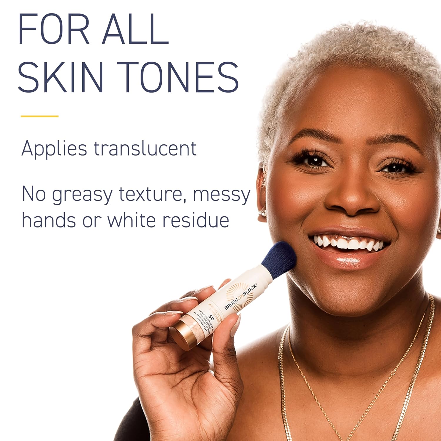 Brush On Block SPF 50 Mineral Powder Sunscreen, Translucent, Broad Spectrum, Water Resistant Face Protection, For All Skin Tones & Types, Reef Friendly, Mfg in USA