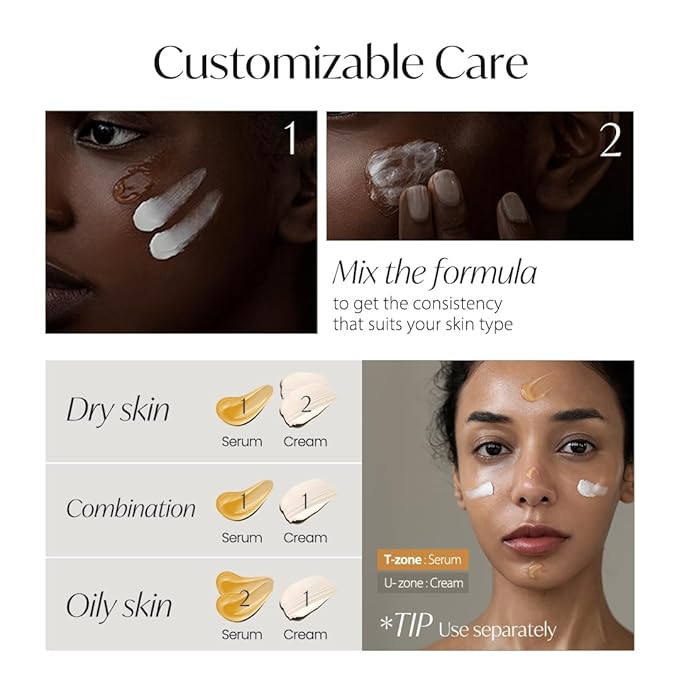 - Customizable Dual Formula: a 2-in-1 intensive skin care system, the 'Aqua Serum' provides deep hydration and skin relief, and the 'Intense Cream' provides nutrition and elasticity.