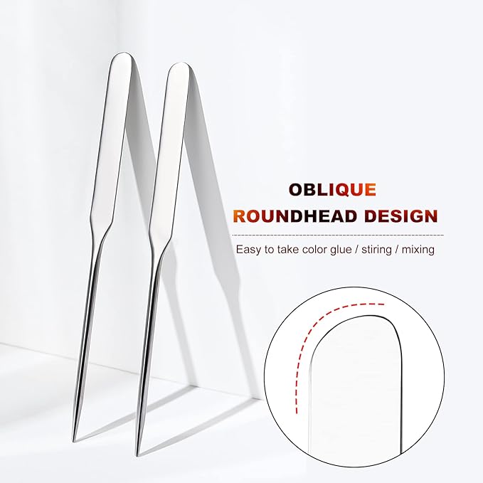 - Design: This makeup spatula is perfect for professional salons or home use. Lightweight and portable, easy to carry and use. Makeup Spatula is oblique Round Head: Ergonomic handle, easy and comfortable to hold. This makeup spatula is convenient for powder/glue/color matching.