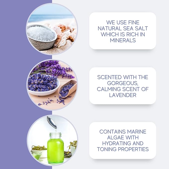Sea Salt Body Scrub by Florida Glow - Ocean Salt Body Polish Infused with Marine Algae - Exfoliating Face and Body Scrub - to Tackle Acne and Scars for Smooth Soft Skin (Lavender, 12.1 oz)