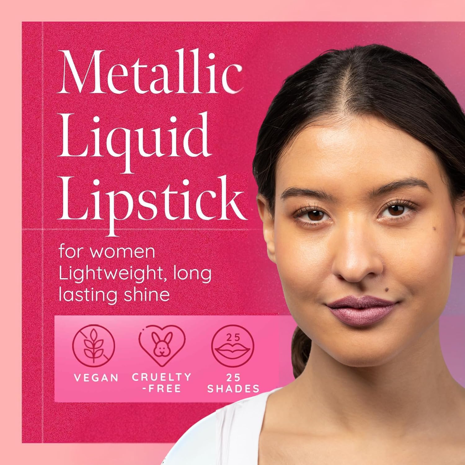 - HANDCRAFTED + HIGH-QUALITY LIPSTICK: Revel in the artisanal excellence of our handmade Metallic Liquid Lipstick. Every tube is filled with passion and precision, promising a high-quality lipstick that glides seamlessly on your lips, delivering a pigment-packed payoff with every application.